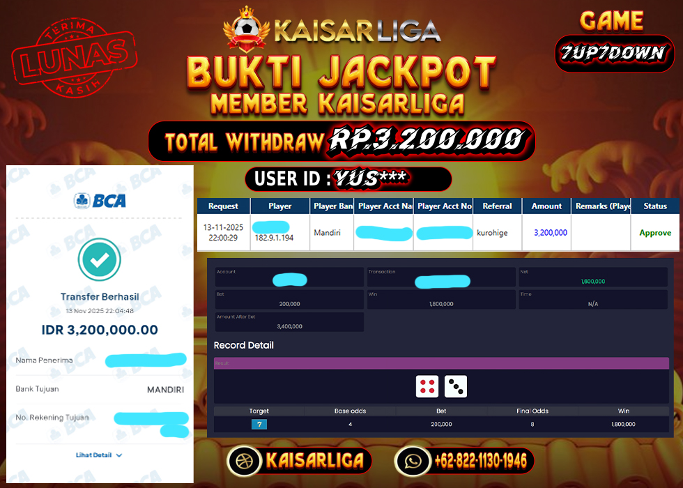 Kabar gembira datang dari dunia slot online! Salah satu member setia KAISARLIGA, dengan User id yus*** baru saja meraih kemenangan besar sebesar RP. 3.200.000.- di permainan 7up7down Kemenangan ini bukan sekadar angka, melainkan bukti nyata komitmen KAISARLIGA sebagai situs slot gacor maxwin terpercaya yang selalu membayar penuh kemenangan para membernya.